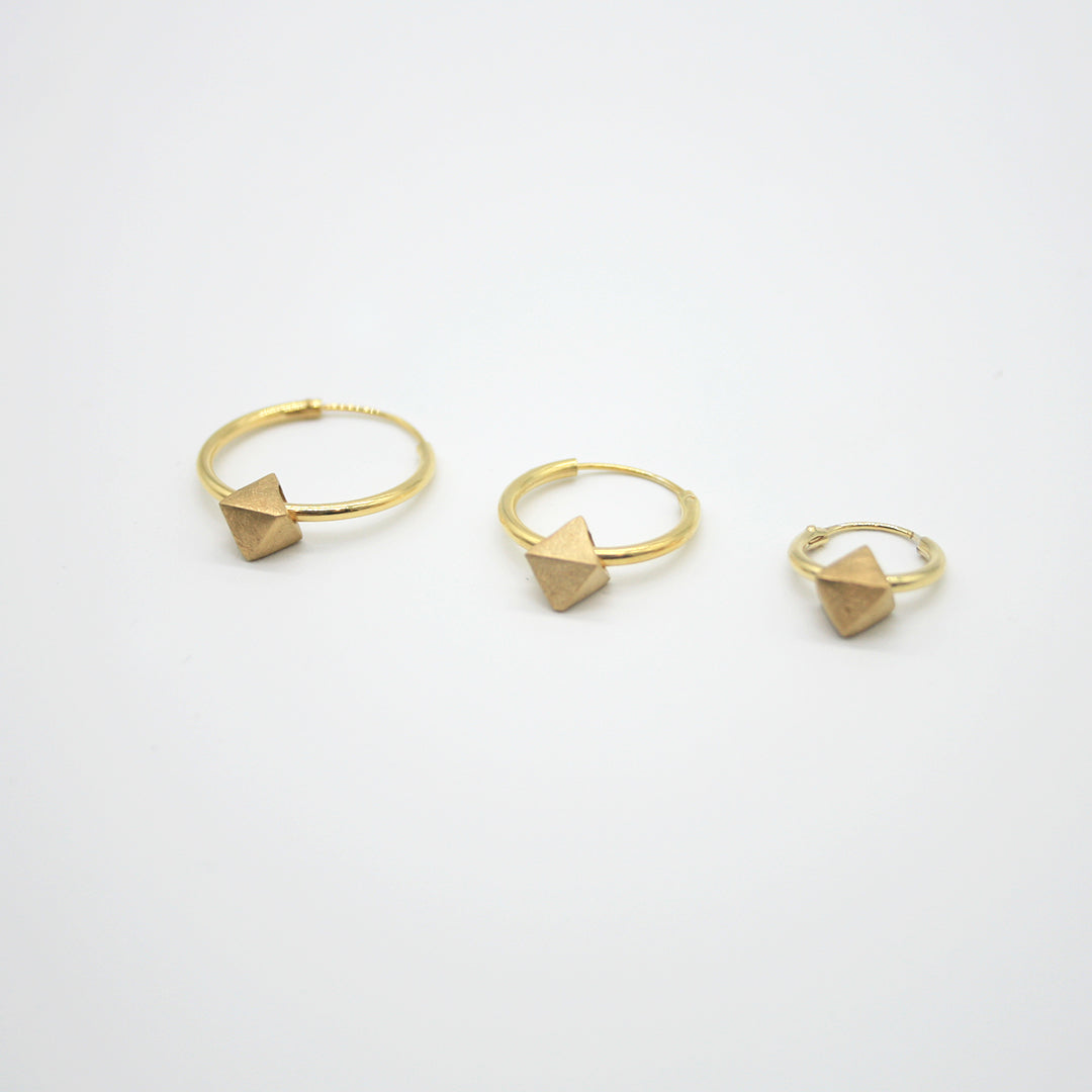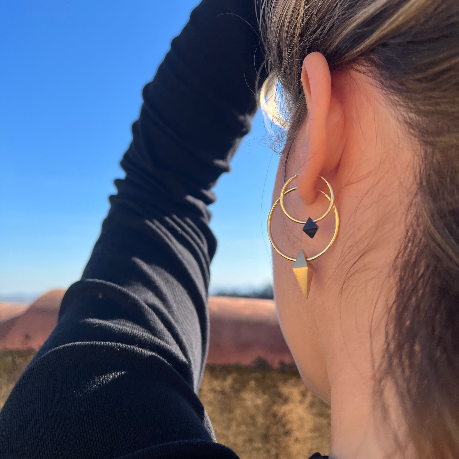 El octaedro es de Bronce Chapado en Oro de 18 kt o de plata oxidada en negro.
